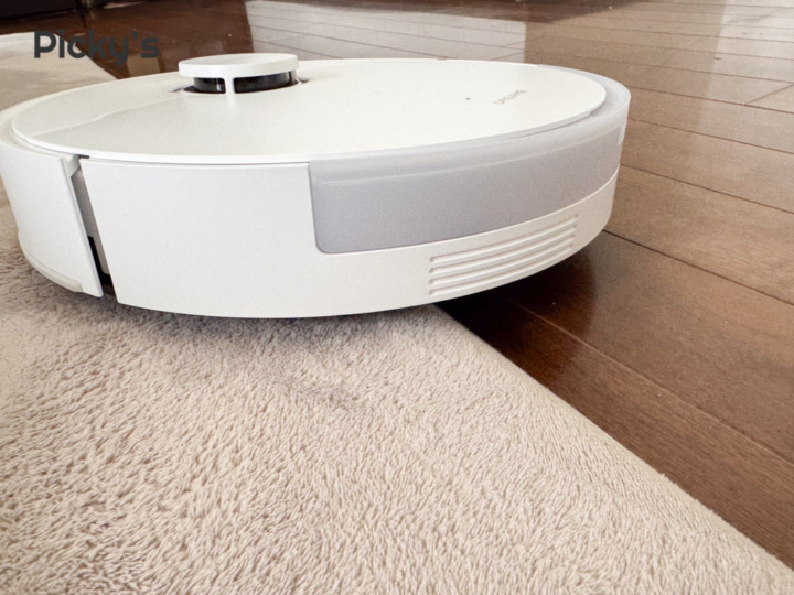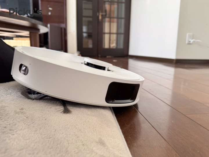 ビニール袋やティッシュなど、ブラシに絡まりやすいものを巻き込んだ場合はエラーになりますが、取り除けばすぐ再開できます。約20mmの厚めのマットも問題なく乗り越えられました。