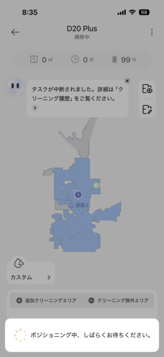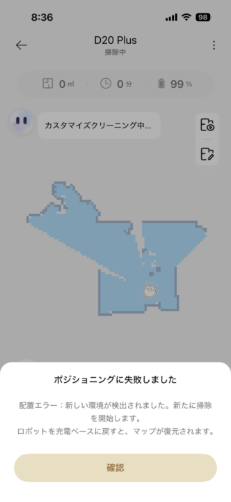 気になったのは再開時の挙動です。D20 Plusは一時停止後に位置の再確認動作が入り、状況によっては少し迷うような動きを見せることがありました。F10 Plusでは、この挙動は比較的少なめでした。