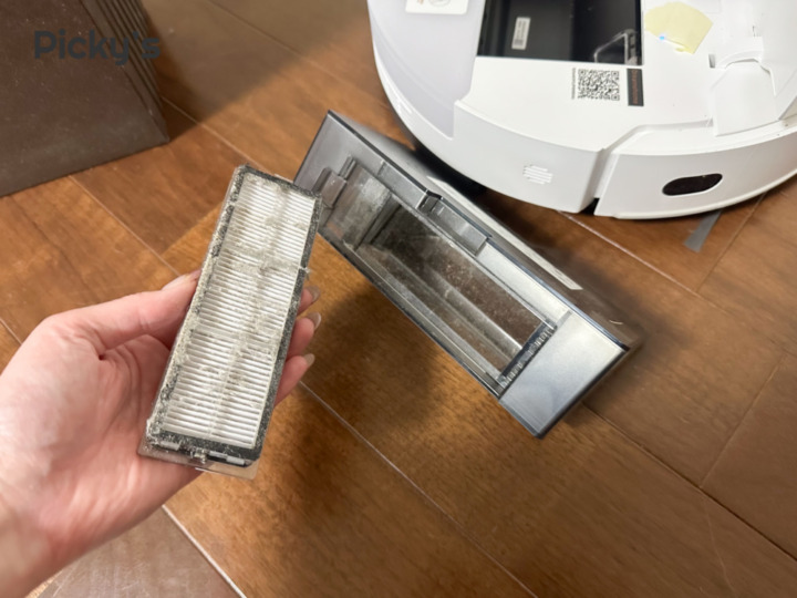 一方のF10 Plusも、ダストボックスや水タンクの着脱はスムーズで、基本的なお手入れに難しさはありません。ブラシ周りのゴミは定期的に取り除く必要がありますが、構造自体はシンプルで扱いやすい印象でした。