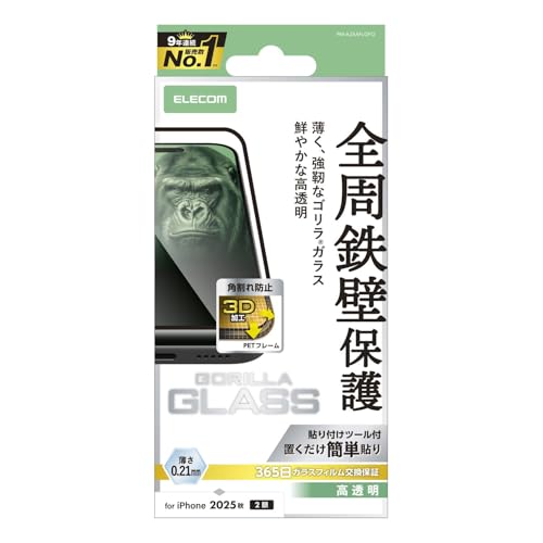 | COLORFUL 強化ガラス保護フィルム | Amazon¥1,000 楽天市場Yahoo! | iPhone 17 含む各種シリーズ | 2枚 | 10H | ガイド枠付き | |