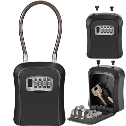 置き型のほか、付属のねじで壁掛けも可能。置き型、持ち運び、壁掛けとあらゆる使い方ができる便利なキーボックスです。