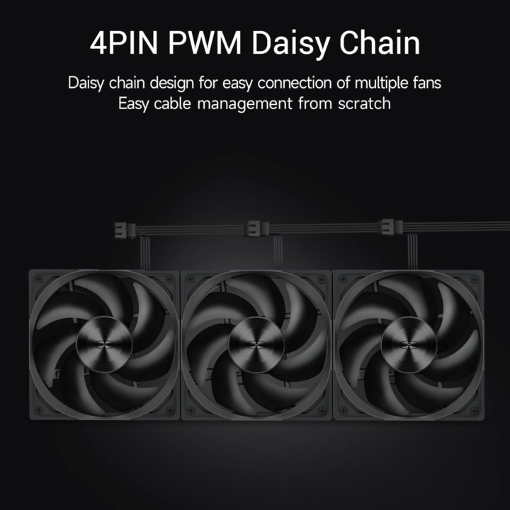 複数のPCケースファンを接続する際、デイジーチェーンに対応した製品を選ぶと便利です。デイジーチェーンとは、PCケースファンを「数珠繋ぎ」で接続できる機能で、内部の配線をすっきりさせられます。