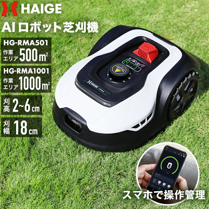 ハイガー 全自動ロボット芝刈り機 HG-RMA501Amazon¥56,800 楽天市場Yahoo!約150坪(500㎡)約19°(35%)20~60mmパスコード55dBIPX5(レインセンサー搭載)
