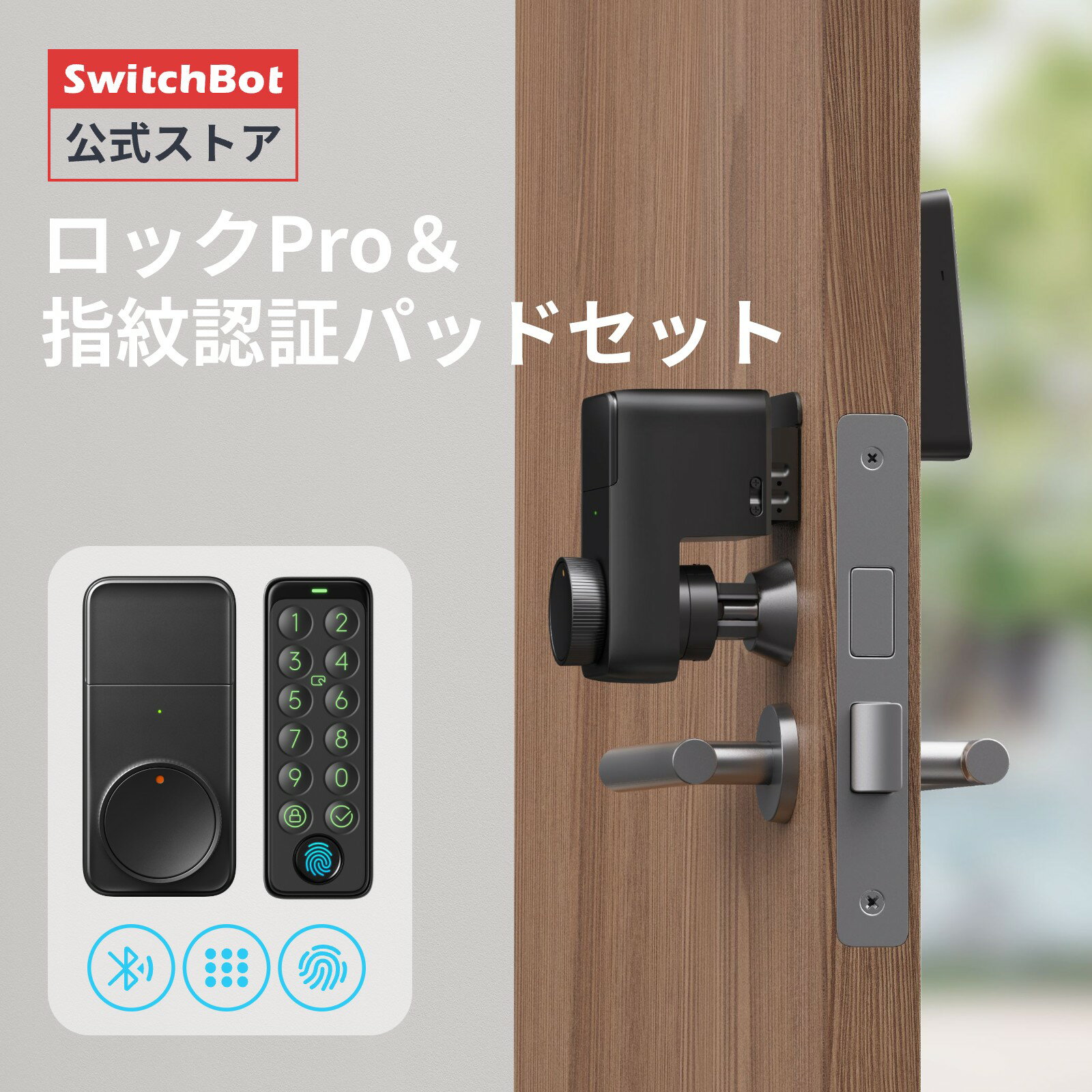 SwitchBot (スイッチボット)は、世界中でシェアされているスマートホームブランド。スマートロックに指紋認証パッドが付属したセット商品です。スマホ操作はもちろん、暗証番号や生体認証でも解錠できます。